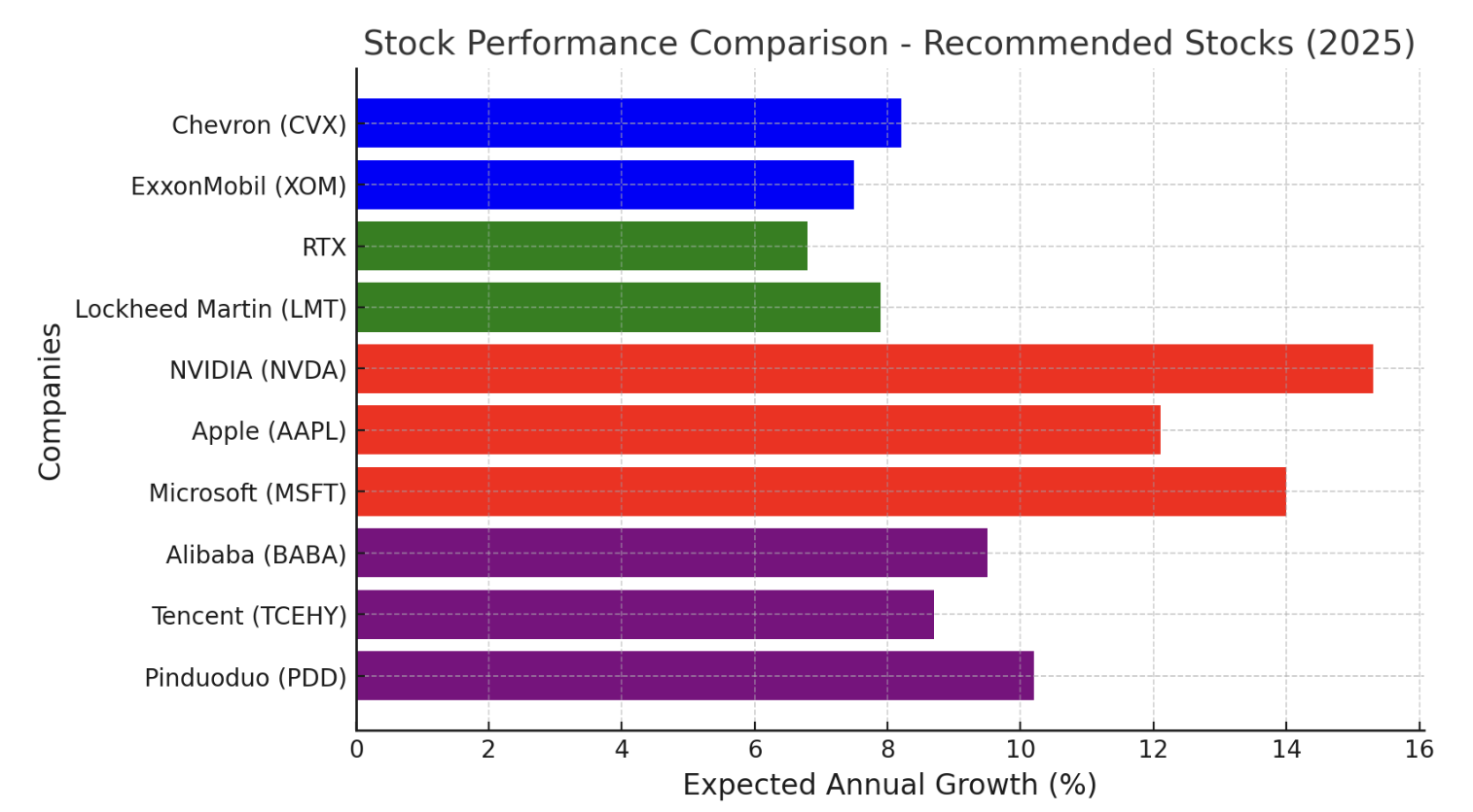 | 중국 주식 | 알리바바(BABA), 텐센트(TCEHY), 핀둬둬(PDD) | 미중 무역 긴장 속 투자 대안, 전자상거래 및 기술 부문 성장 |
